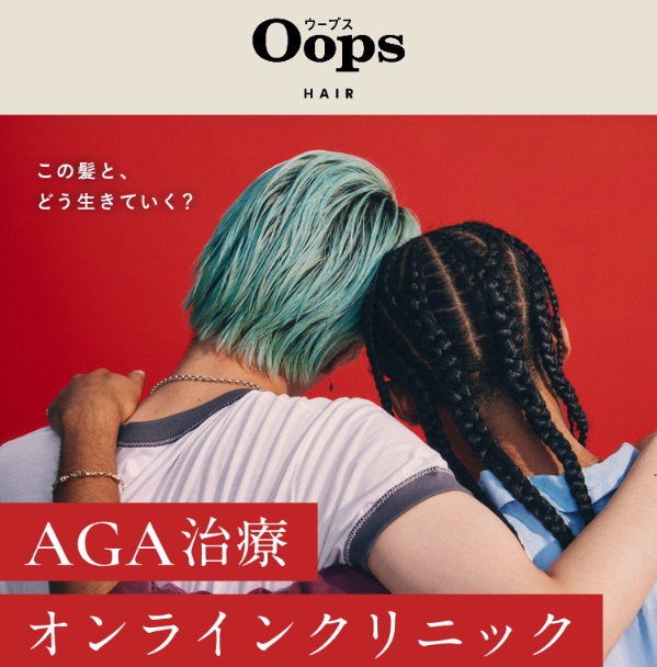 Oops HAIR(ウープスヘア) は、20〜30代の若い世代に人気の新しいオンラインAGAクリニックです。LINEを使った気軽な相談スタイルが特徴で、「AGA治療はカッコ悪くない!」をコンセプトに掲げています。