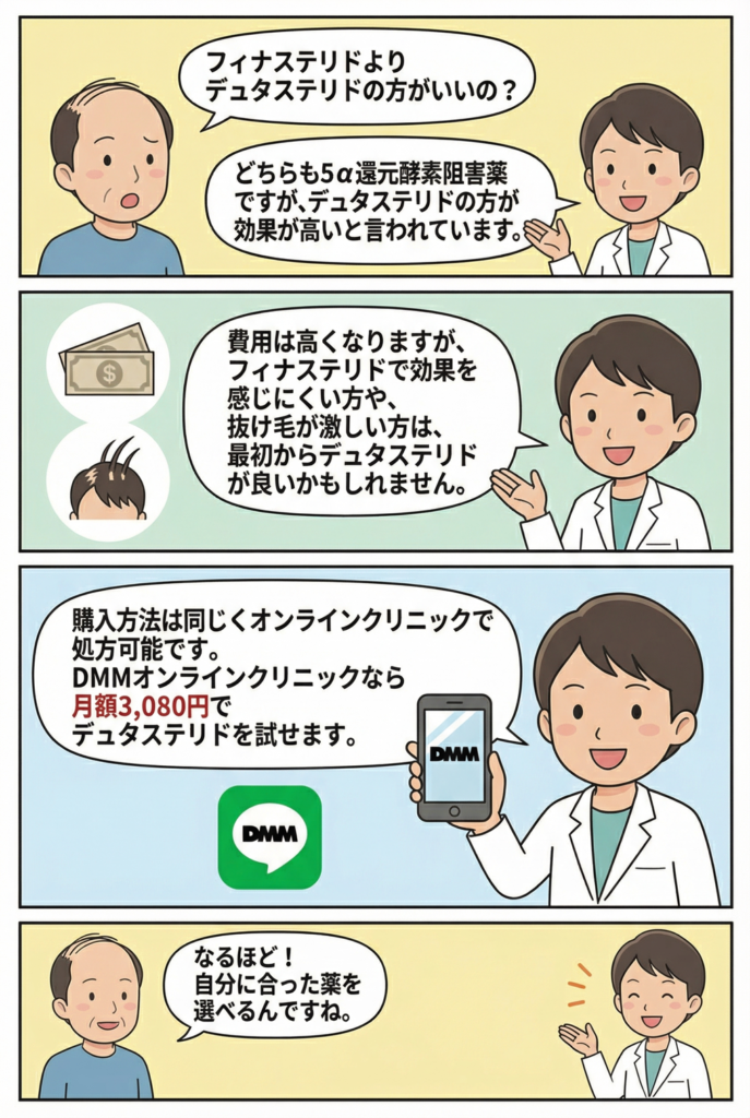 デュタステリドとフィナステリドはどちらも5α還元酵素阻害薬です。ただし、デュタステリドの方が効果は高いと言われています。